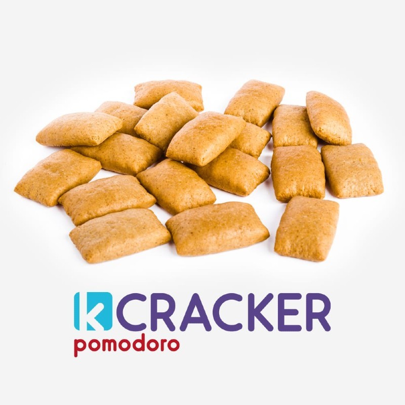 Snack salato tipo mini crackers al pomodoro e origano. Il prodotto non contiene, non deriva e non è costituito da organismi geneticamente modificati (OGM).