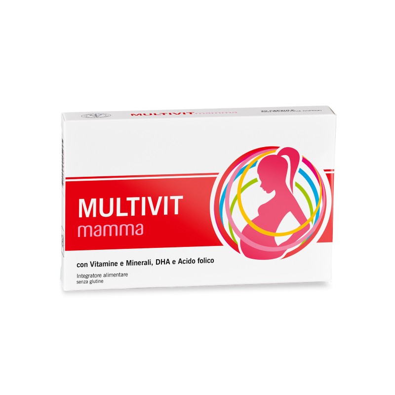 Multivit Mamma è un integratore alimentare a base di un pool bilanciato di Vitamine e Minerali essenziali tra cui Vitamina D3, Iodio, Selenio e Ferro, Acido folico e DHA per integrare l’alimentazione delle donne in gravidanza, in allattamento o che cercano una gravidanza.