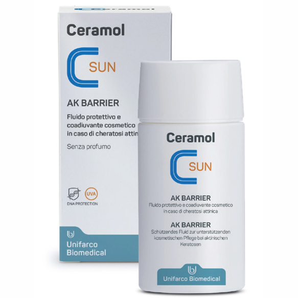 Fluido ad attività protettiva e preventiva dei danni associati ad una eccessiva fotoesposizione. Coadiuvante cosmetico consigliato in caso di cheratosi attinica.