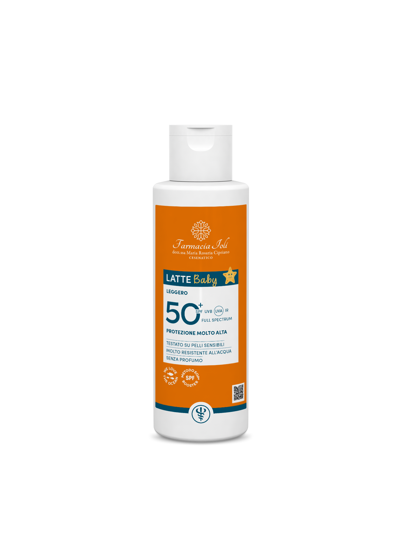 Latte Baby SPF 50+ ha una texture leggera, idratante e comfortevole specifica per la pelle dei bambini.
